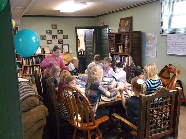 So hopefully I'll get fall and winter posted this afternoon also...This is Anna's 6th birthday (February). I've never done a birthday party for either of the girls, so I told them that we would do just one - we even made a horse shape cake:)